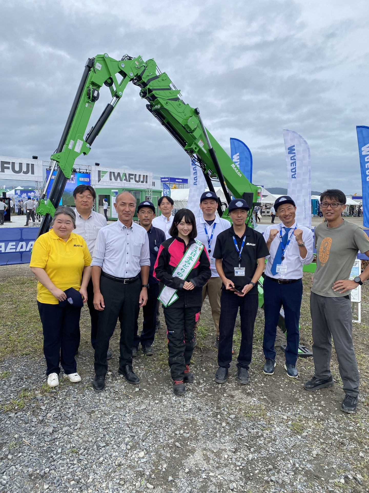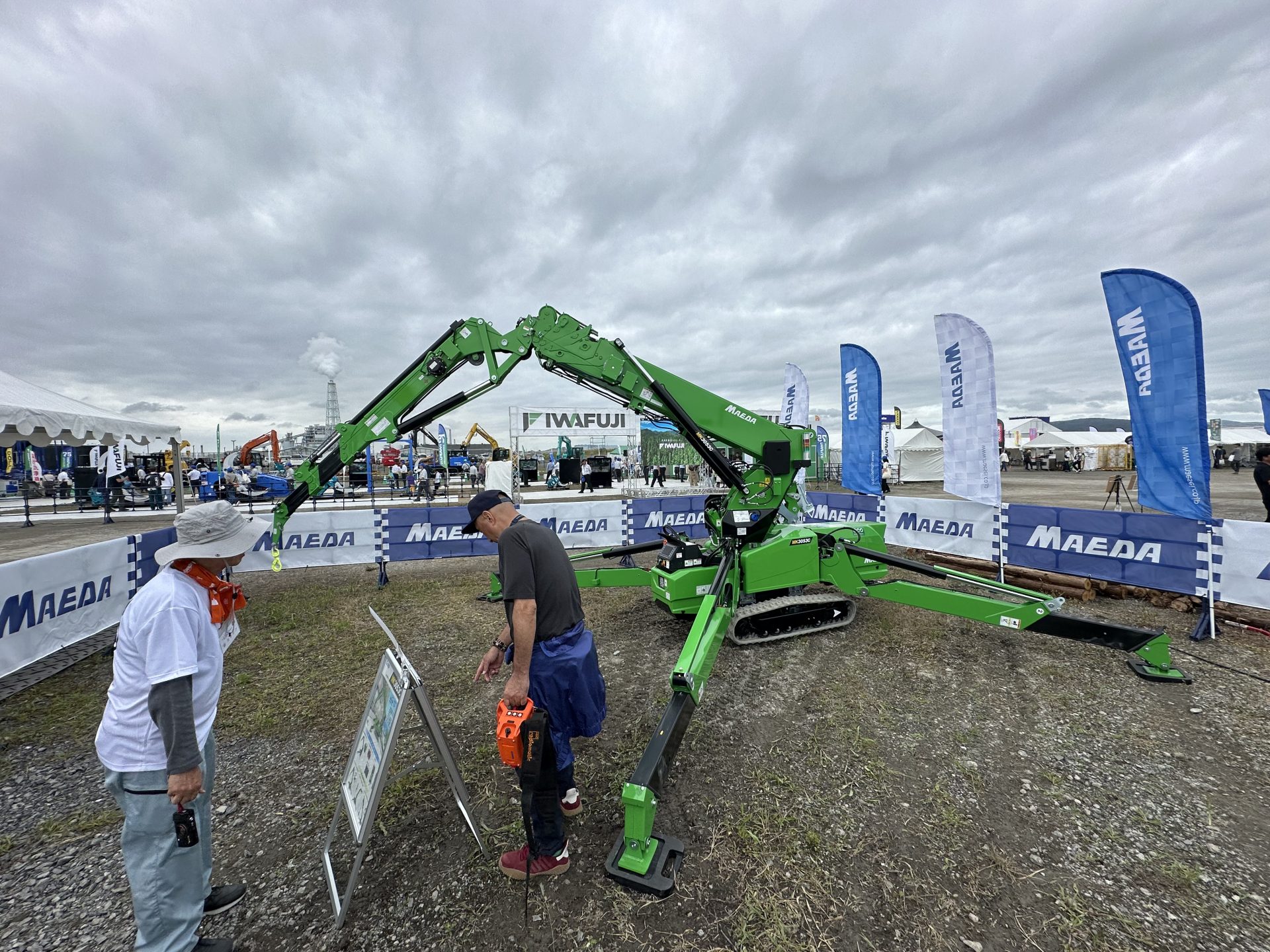 林業機械の老舗イワフジ工業様の「U6EG」ローダータイプ、とても広いブースでの実演は賑わっていました。